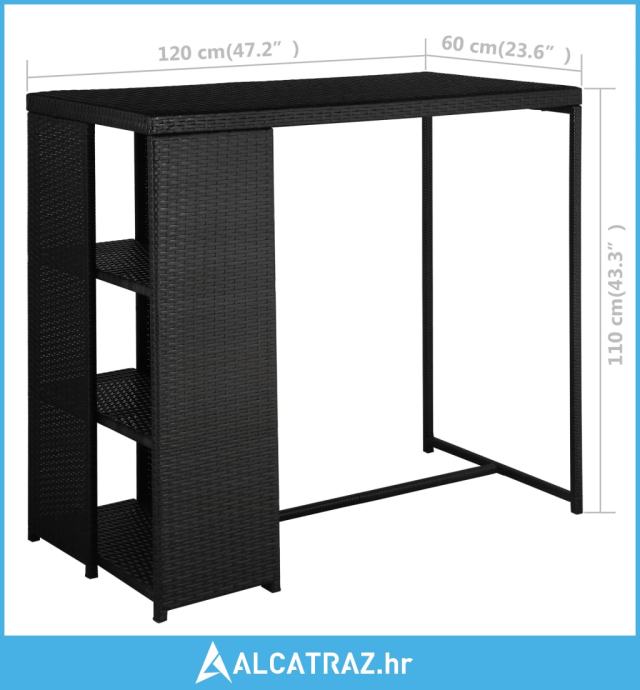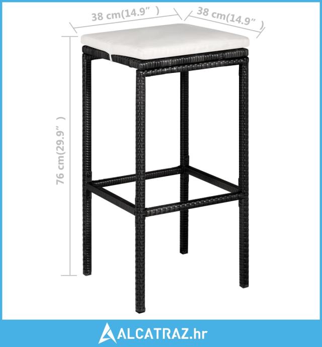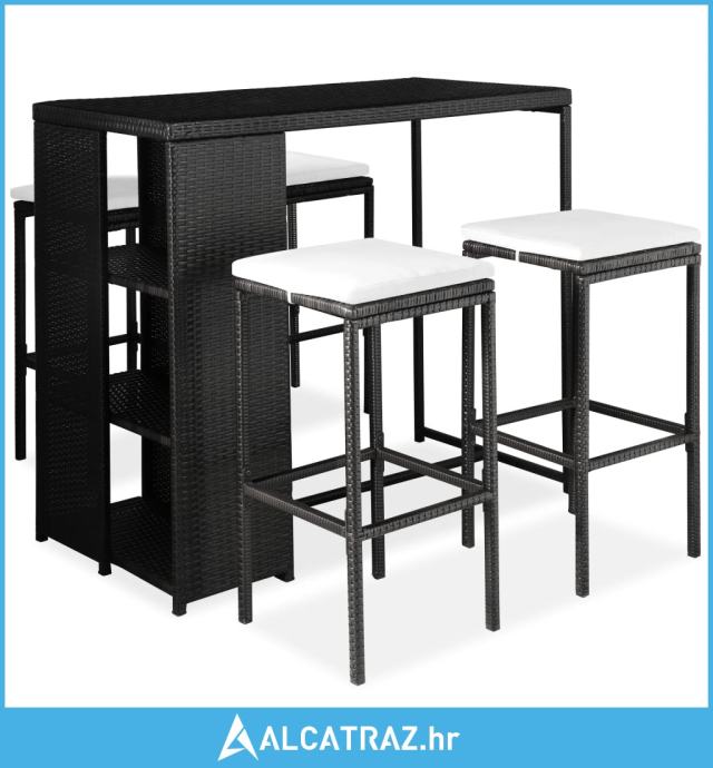5-dijelni vrtni barski set od poliratana s jastucima crni - NOVO