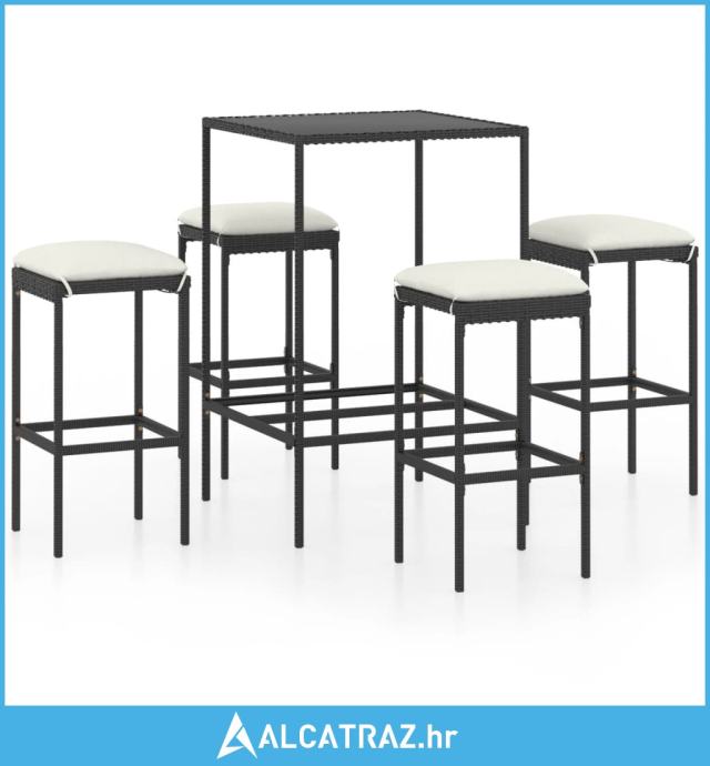 5-dijelni vrtni barski set od poliratana s jastucima crni - NOVO