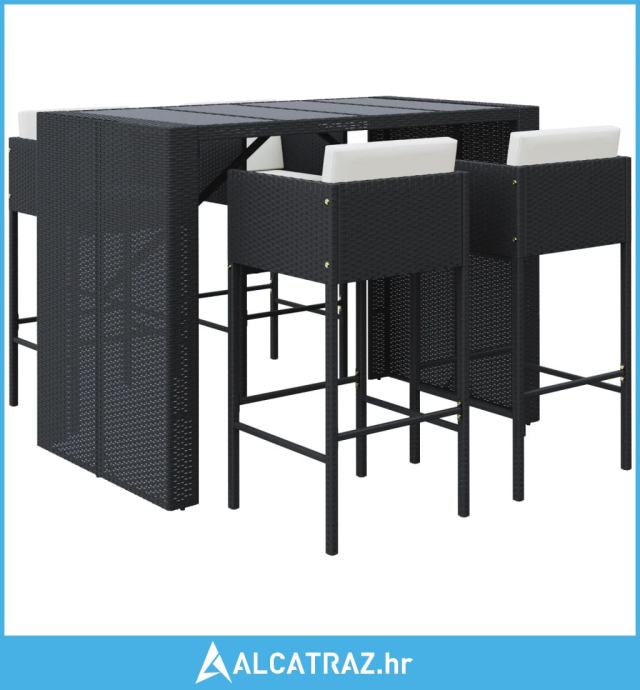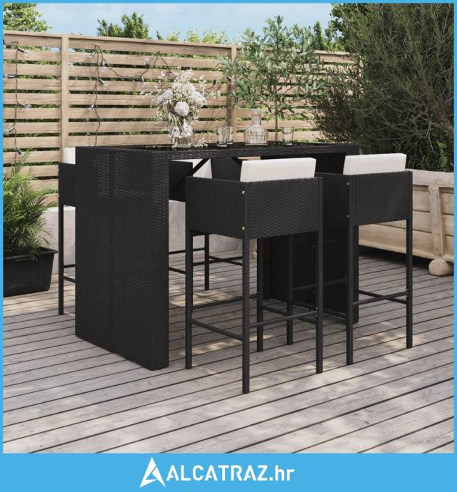 5-dijelni vrtni barski set od poliratana s jastucima crni - NOVO