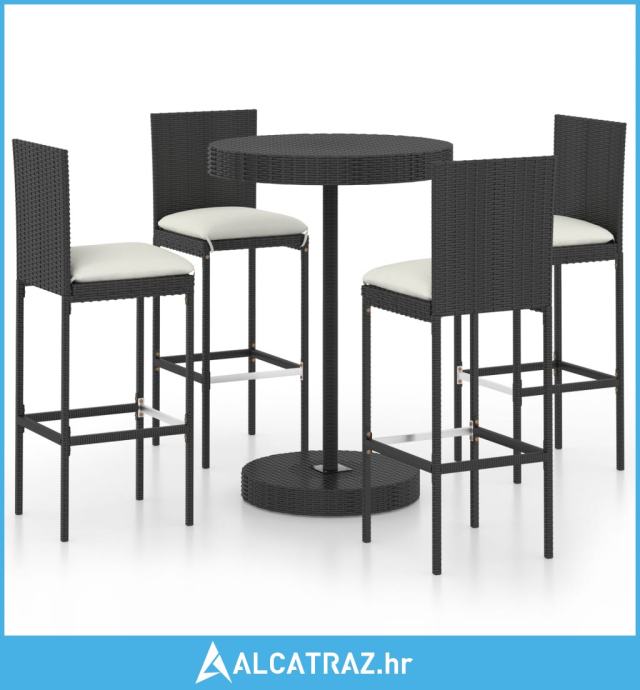 5-dijelni vrtni barski set od poliratana s jastucima crni - NOVO