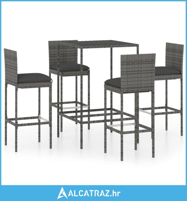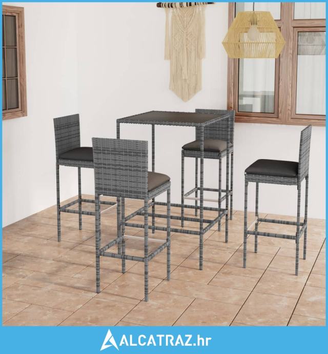 5-dijelni vrtni barski set od poliratana s jastucima sivi - NOVO