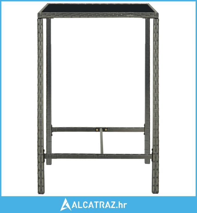 Ovaj stol za šank sadrži čelični okvir presvučen prahom, prekriven vodootpornim PE ratanom, što osigurava dugotrajnu uporabu na otvorenom. Osim toga, stolna ploča od kaljenog stakla olakšava čišćenje. Stolci imaju jaku konstrukciju s čeličnim okvirom i napravljeni su od PE ratana otpornog na vremenske utjecaje, što osigurava stabilnost i lako pomicanje. Jastuk za sjedalo i ugrađeni oslonac za noge također daju dodatnu udobnost sjedenju na stolcu.
