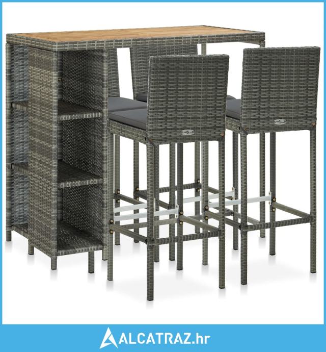 5-dijelni vrtni barski set od poliratana s jastucima sivi - NOVO