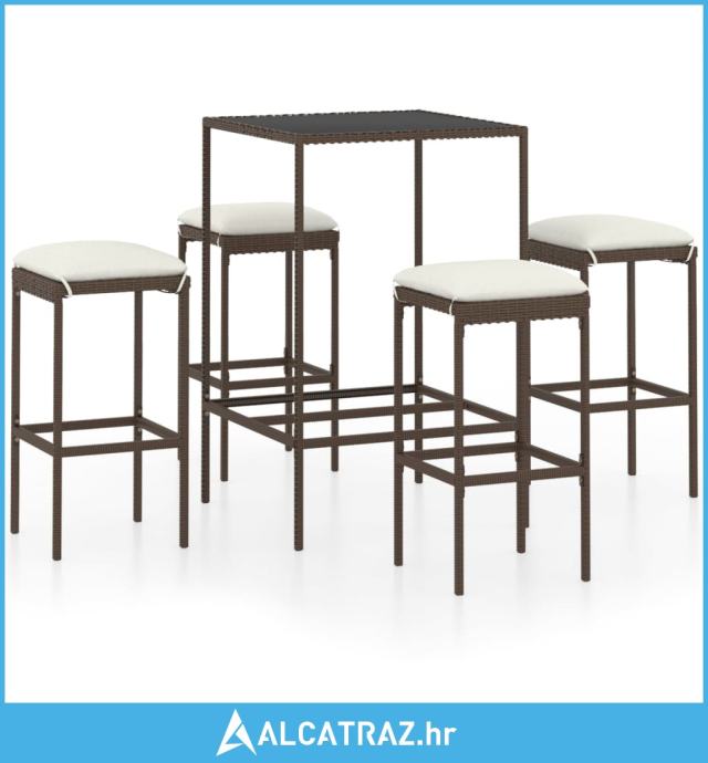 5-dijelni vrtni barski set od poliratana s jastucima smeđi - NOVO