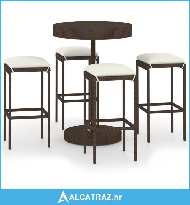 5-dijelni vrtni barski set od poliratana s jastucima smeđi - NOVO