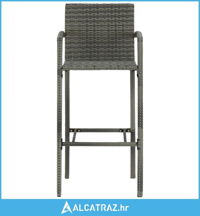 Barski stol poduprt je čeličnim okvirom obloženim prahom, zbog čega je stabilan i čvrst. Okrugla stolna ploča idealna je za postavljanje pića, hrane ili nekih ukrasnih predmeta. Stolci imaju snažnu konstrukciju od čeličnog okvira i napravljeni su od PE ratana otpornog na vremenske utjecaje, što osigurava stabilnost i lako pomicanje. Oslonac za noge također daje dodatnu udobnost sjedenju na stolcu.