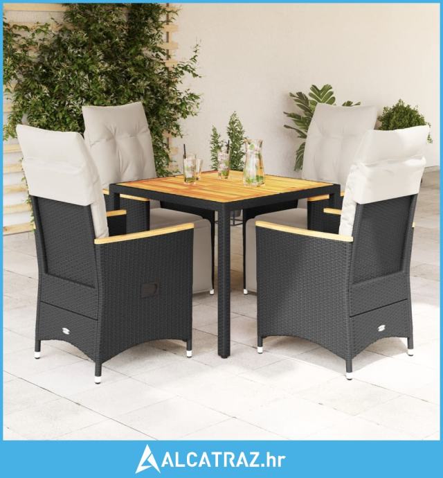 5-dijelni vrtni bistro set od poliratana s jastucima crni - NOVO