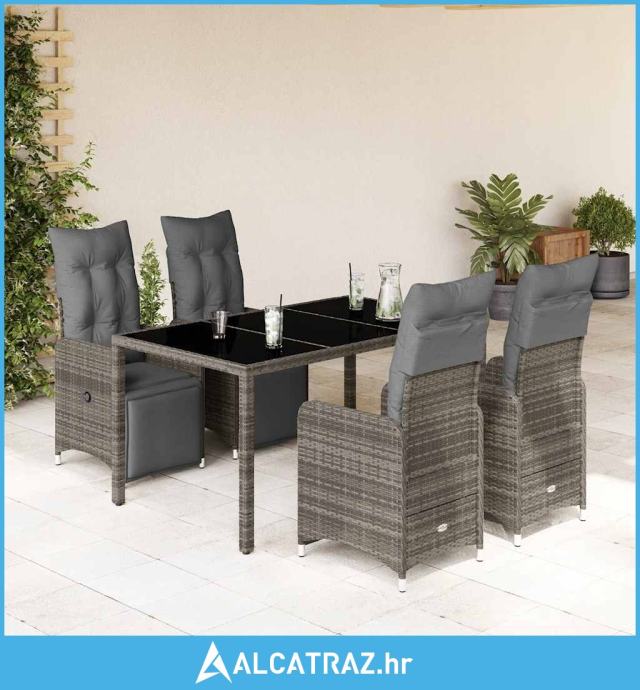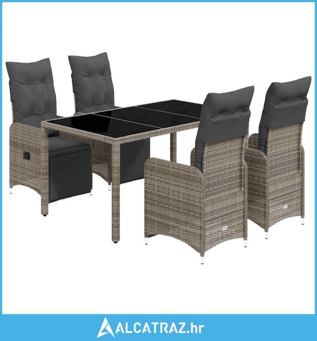 5-dijelni vrtni bistro set od poliratana s jastucima sivi - NOVO