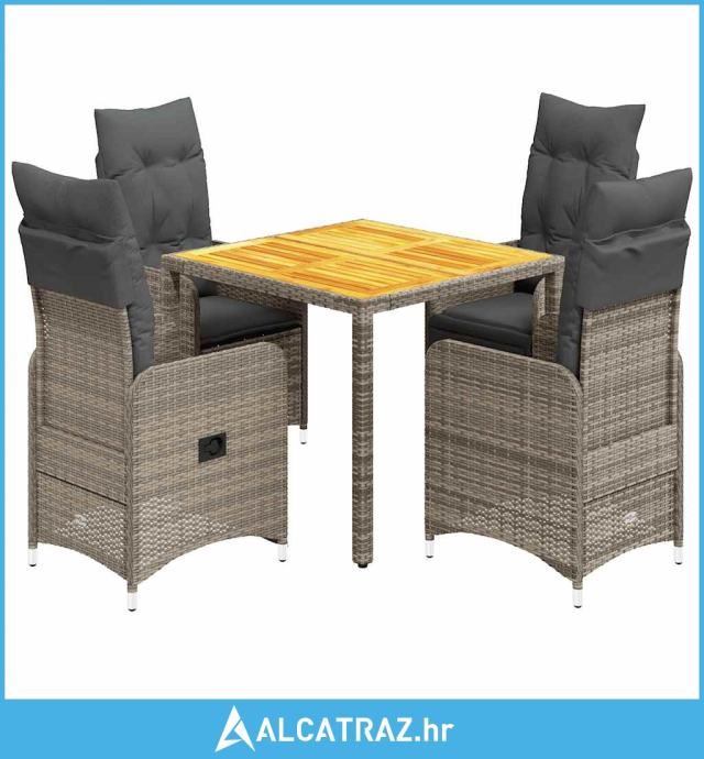 5-dijelni vrtni bistro set od poliratana s jastucima sivi - NOVO