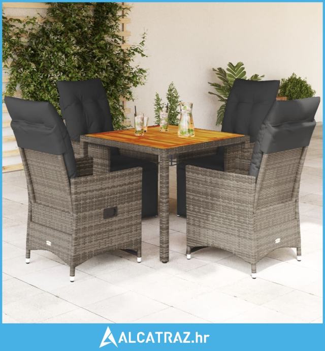 5-dijelni vrtni bistro set od poliratana s jastucima sivi - NOVO