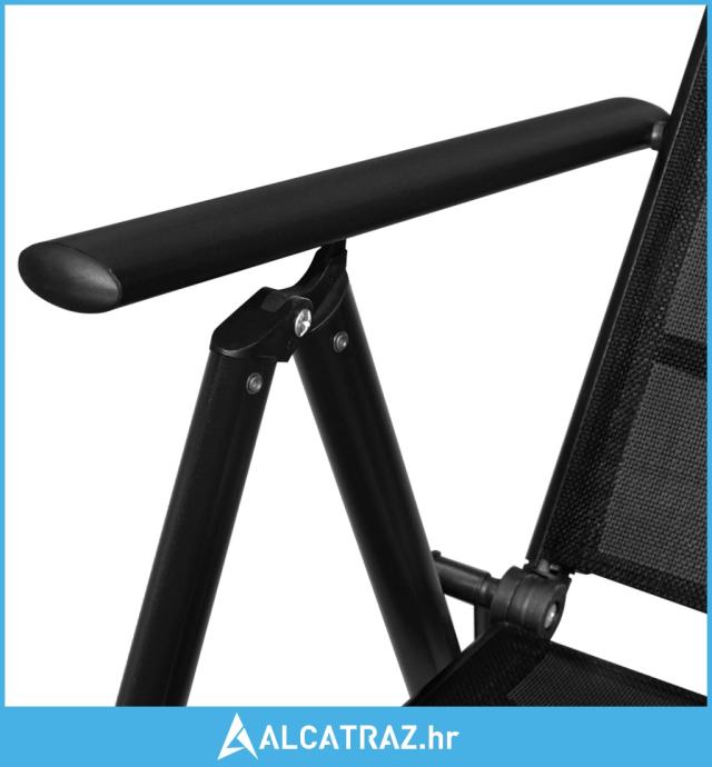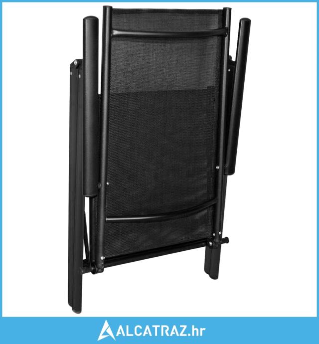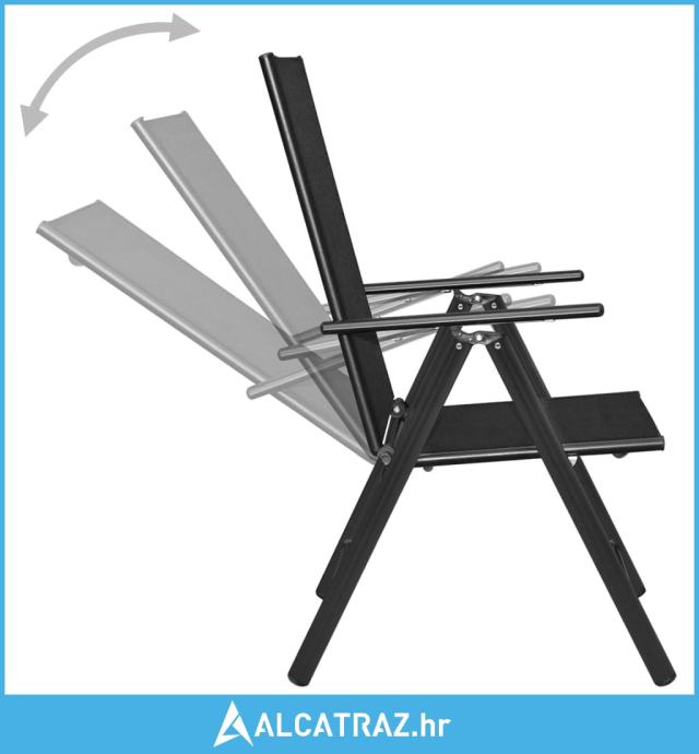 Aluminijski okvir s praškastim premazom čini ovaj set namještaja vrlo čvrstim i izdržljivim. Vrtne stolice imaju sjedala i naslone od tekstilena mekane na dodir i mogu se podesiti u 7 postavki, tako da uvijek možete pronaći najudobniji položaj za sjedenje. Ove stolice mogu se sklopiti radi uštede prostora kad se ne upotrebljavaju. Stol ima staklenu stolnu ploču, koja se lako čisti i prikladna je za vanjsku upotrebu.