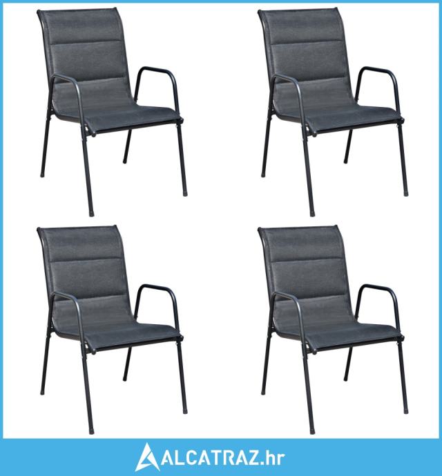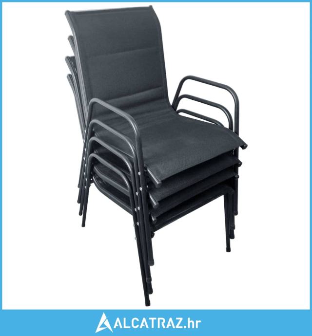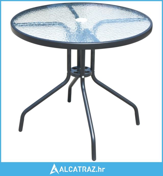 Udobne stolice su izrađene od visokokvalitetnog čelika s praškastim premazom. Zahvaljujući čvrstom tekstilenu s vodootpornom podstavom, naše stolice su vrlo udobne, otporne na vremenske utjecaje i jednostavne za čišćenje. Mogu se složiti jedna na drugu kako bi se uštedio prostor. Stol ima ploču izrađenu od valovitog kaljenog stakla debljine 5 mm, na koju možete odložiti vaša pića, grickalice ili ukrasne predmete. Stol, također ima i čvrst čelični okvir obložen prahom koji je izdržljiv i jednostavan za održavanje. Sa središnjim otvorima za suncobran na vrhu i dnu stola lako možete postaviti veliki suncobran kako biste stvorili hlad tijekom vrućih ljetnih dana. Sastavljanje je jednostavno.