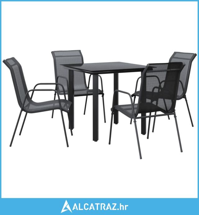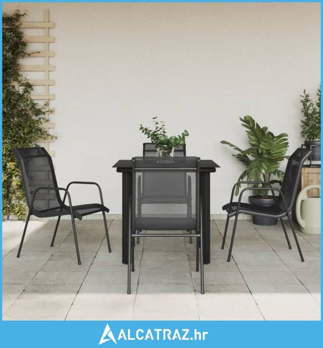 5-dijelni vrtni blagovaonski set crni od čelika i tekstilena - NOVO