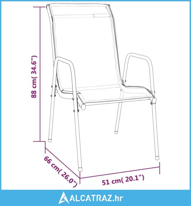 - Izdržljiv materijal: Zahvaljujući snažnoj tkanini od tekstilena, ove vanjske stolice otporne su na vremenske uvjete i lako se čiste.