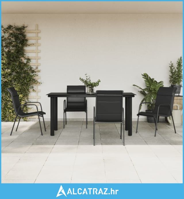 5-dijelni vrtni blagovaonski set crni od čelika i tekstilena - NOVO