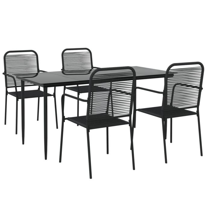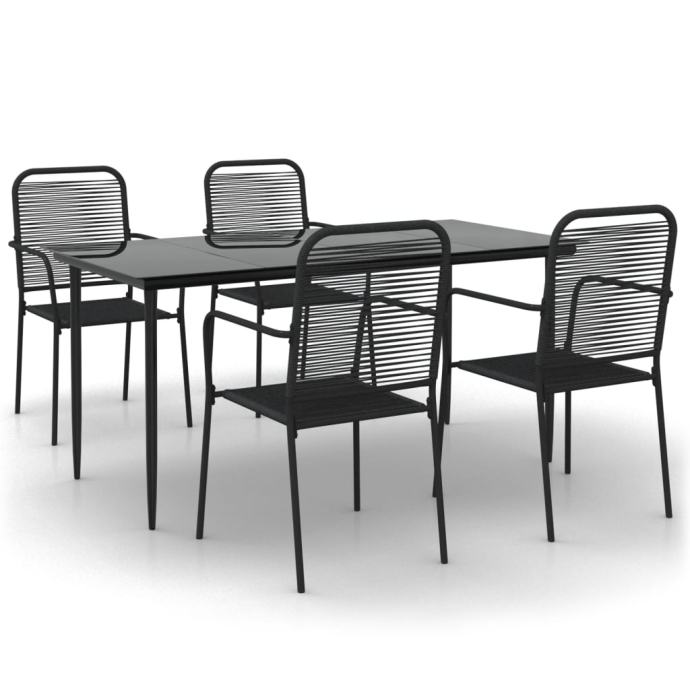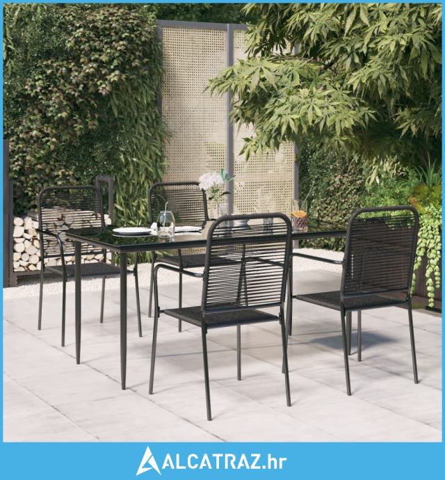 5-dijelni vrtni blagovaonski set crni pamučno uže i čelik - NOVO