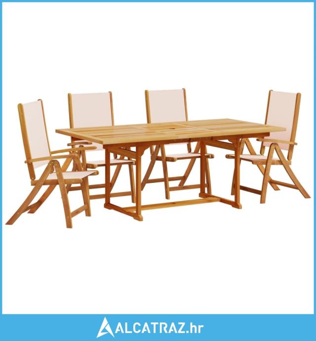 5-dijelni vrtni blagovaonski set od drva bagrema i tekstilena - NOVO