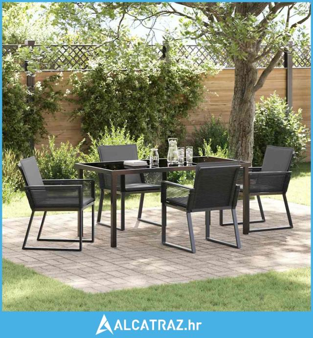 5-dijelni vrtni blagovaonski set s jastučićima Crni Poli Ratan - NOVO