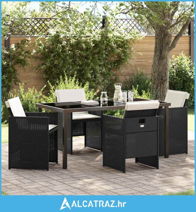 5-dijelni vrtni blagovaonski set s jastučićima Crni Poly Ratan - NOVO