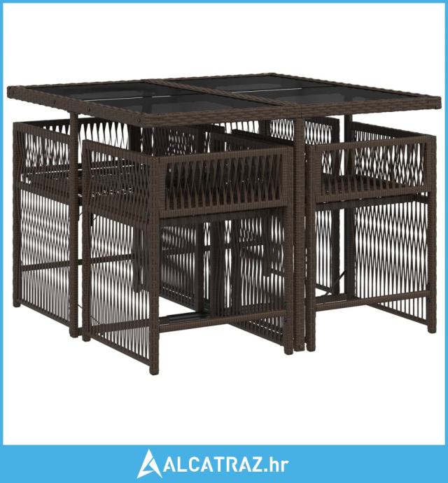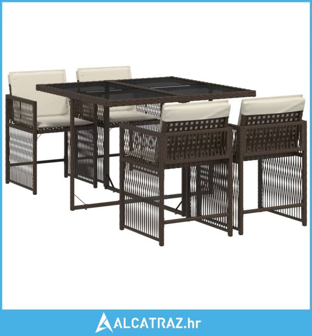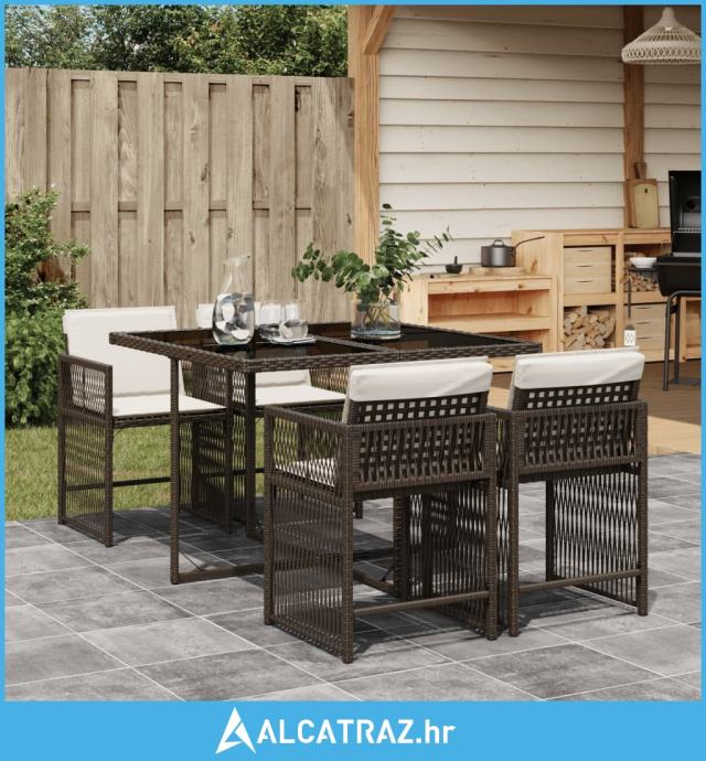 5-dijelni vrtni blagovaonski set s jastucima poliratan smeđi - NOVO
