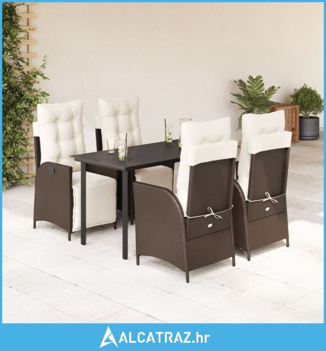 5-dijelni vrtni blagovaonski set s jastucima poliratan smeđi - NOVO