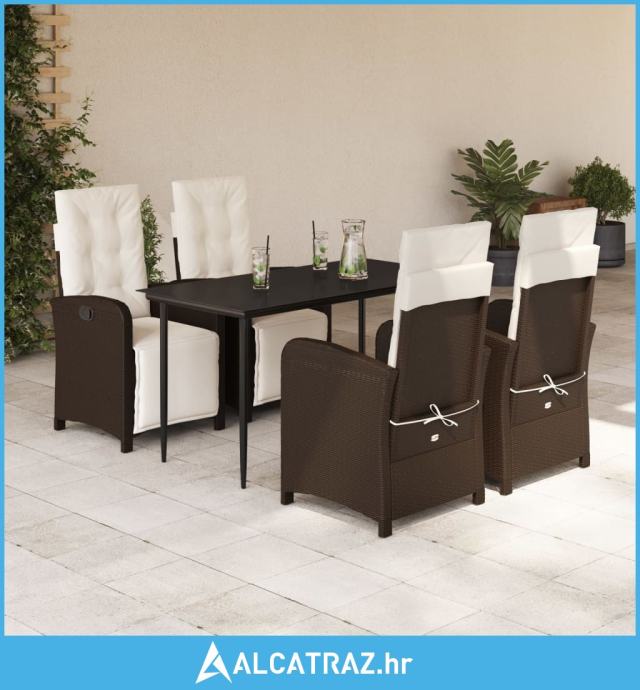 5-dijelni vrtni blagovaonski set s jastucima poliratan smeđi - NOVO