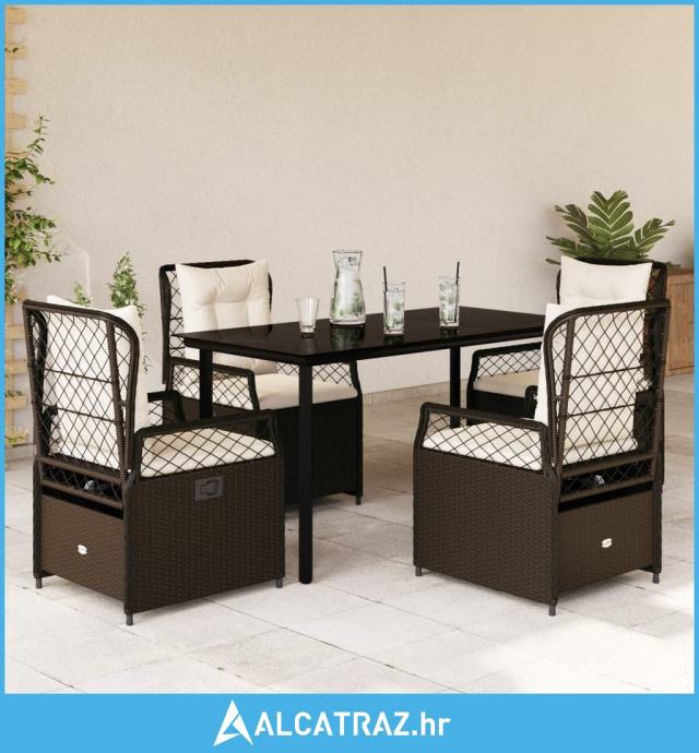 5-dijelni vrtni blagovaonski set s jastucima poliratan smeđi - NOVO