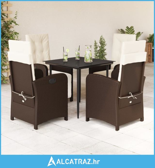5-dijelni vrtni blagovaonski set s jastucima poliratan smeđi - NOVO