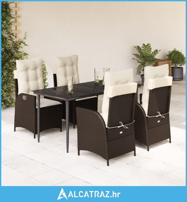 5-dijelni vrtni blagovaonski set s jastucima poliratan smeđi - NOVO