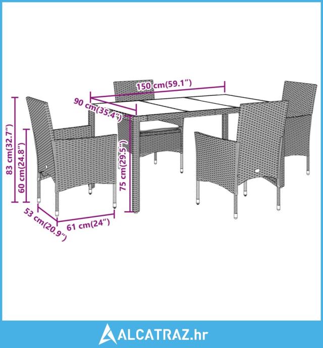 5-dijelni vrtni blagovaonski set s jastucima poliratan i staklo - NOVO