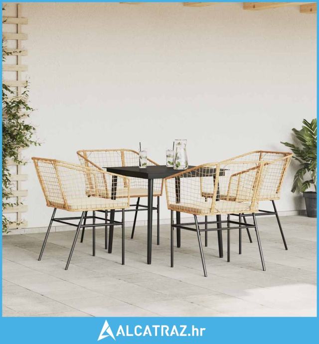 5-dijelni vrtni blagovaonski set s jastucima poliratan i staklo - NOVO