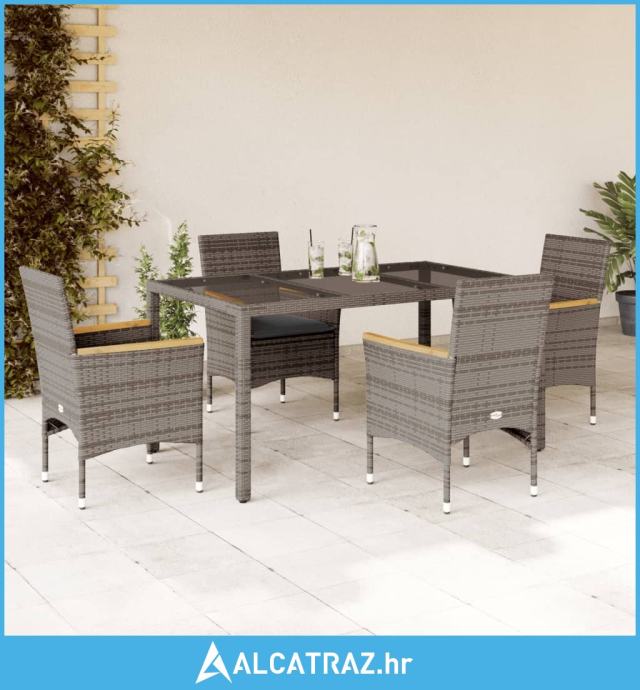 5-dijelni vrtni blagovaonski set s jastucima poliratan i staklo - NOVO