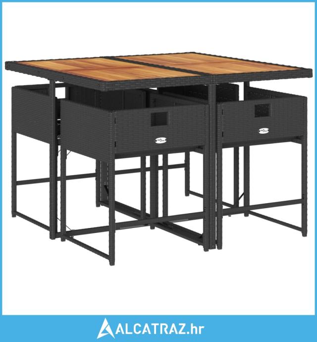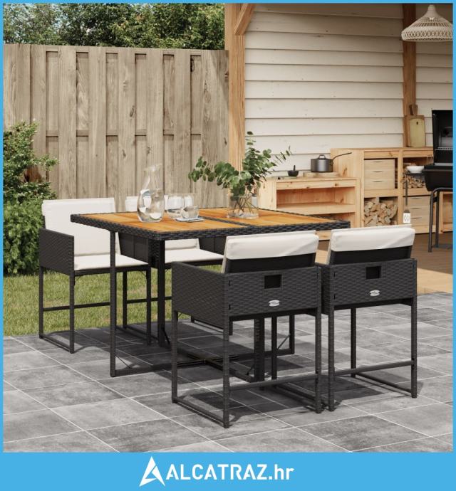 5-dijelni vrtni blagovaonski set s jastucima od poliratana crni - NOVO