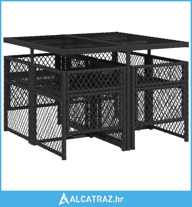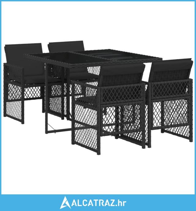 5-dijelni vrtni blagovaonski set s jastucima od poliratana crni - NOVO