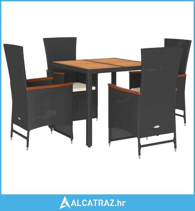 5-dijelni vrtni blagovaonski set s jastucima od poliratana crni - NOVO