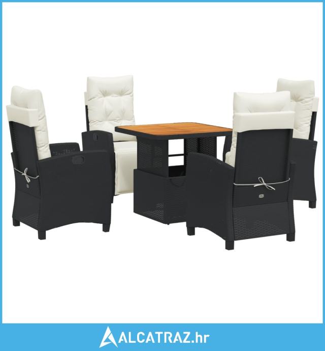 5-dijelni vrtni blagovaonski set s jastucima od poliratana crni - NOVO