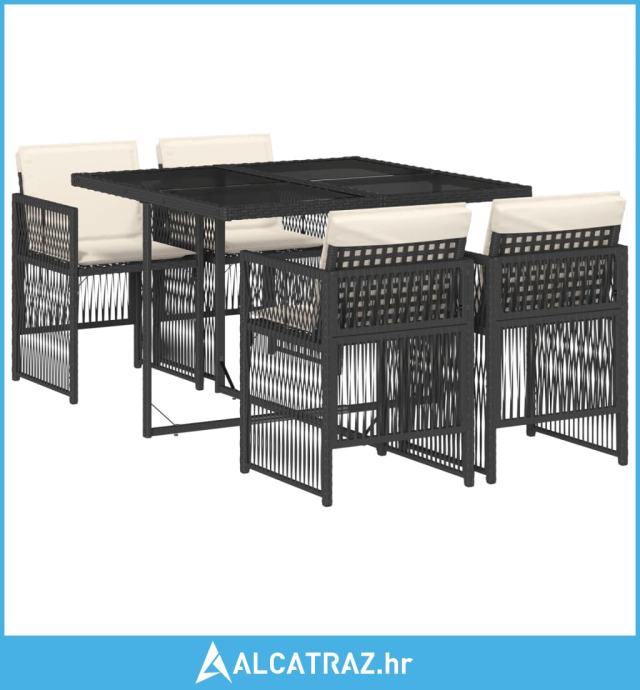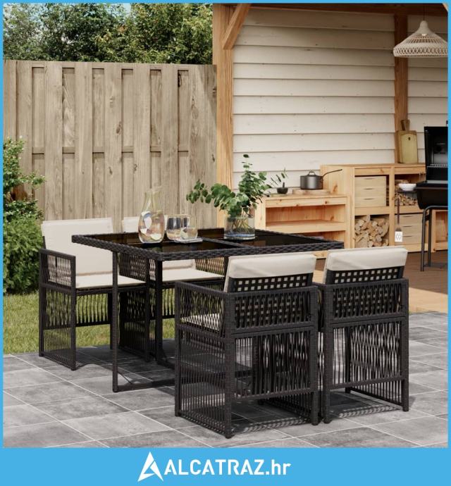 5-dijelni vrtni blagovaonski set s jastucima od poliratana crni - NOVO