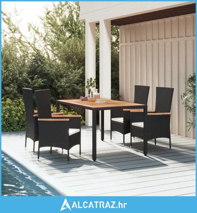 5-dijelni vrtni blagovaonski set s jastucima od poliratana crni - NOVO