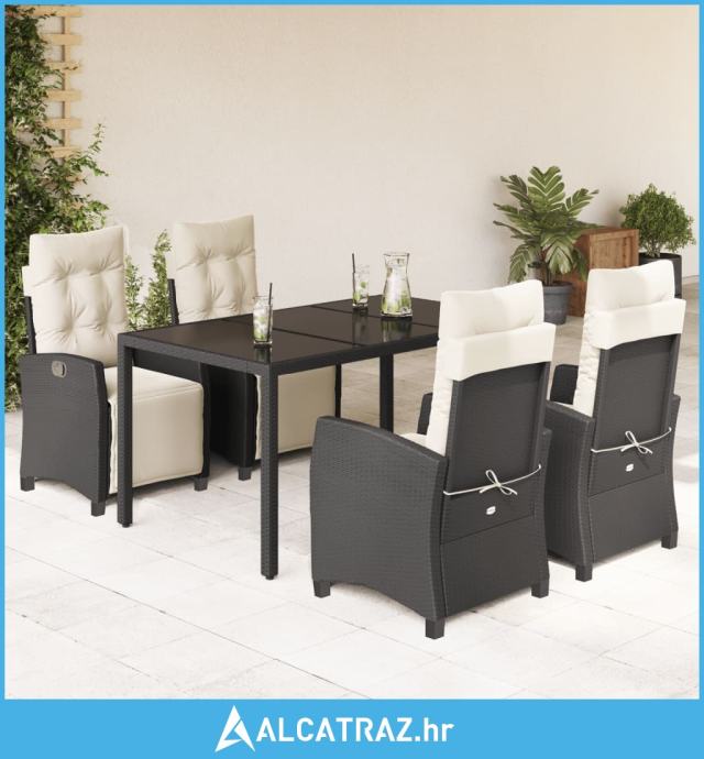 5-dijelni vrtni blagovaonski set s jastucima od poliratana crni - NOVO