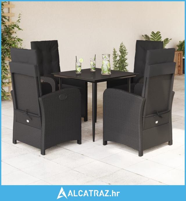 5-dijelni vrtni blagovaonski set s jastucima od poliratana crni - NOVO