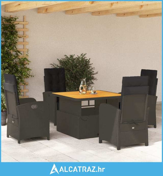 5-dijelni vrtni blagovaonski set s jastucima od poliratana crni - NOVO