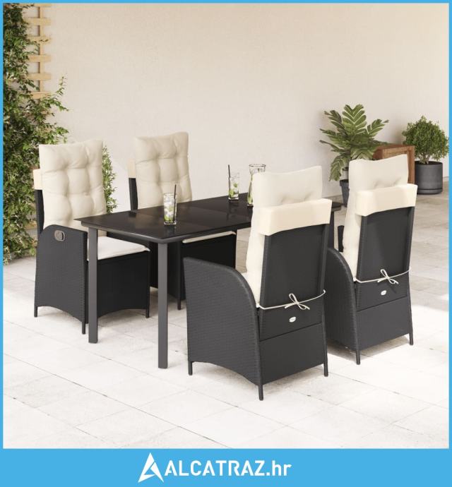 5-dijelni vrtni blagovaonski set s jastucima od poliratana crni - NOVO