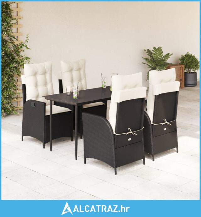 5-dijelni vrtni blagovaonski set s jastucima od poliratana crni - NOVO