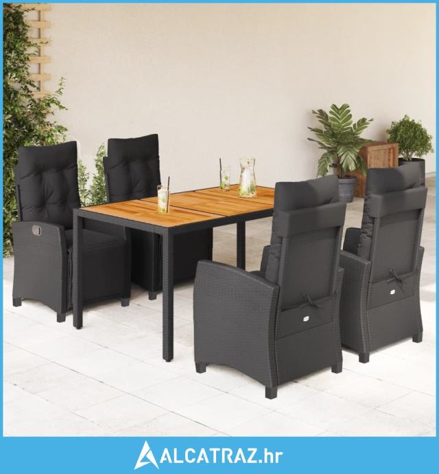 5-dijelni vrtni blagovaonski set s jastucima od poliratana crni - NOVO