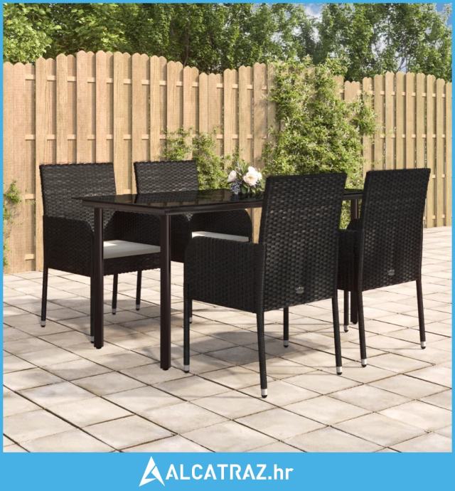 5-dijelni vrtni blagovaonski set s jastucima od poliratana crni - NOVO