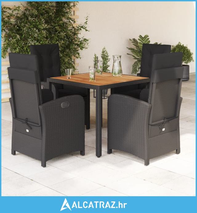 5-dijelni vrtni blagovaonski set s jastucima od poliratana crni - NOVO