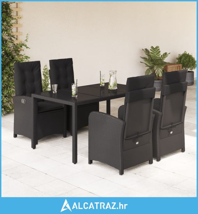 5-dijelni vrtni blagovaonski set s jastucima od poliratana crni - NOVO