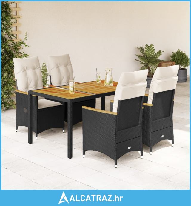 5-dijelni vrtni blagovaonski set s jastucima od poliratana crni - NOVO