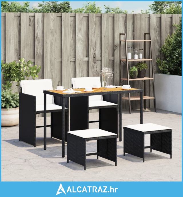 5-dijelni vrtni blagovaonski set s jastucima od poliratana crni - NOVO