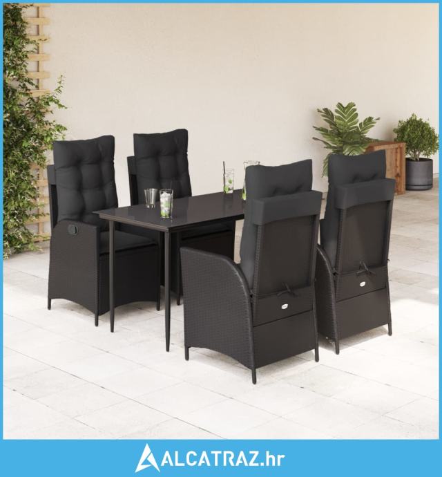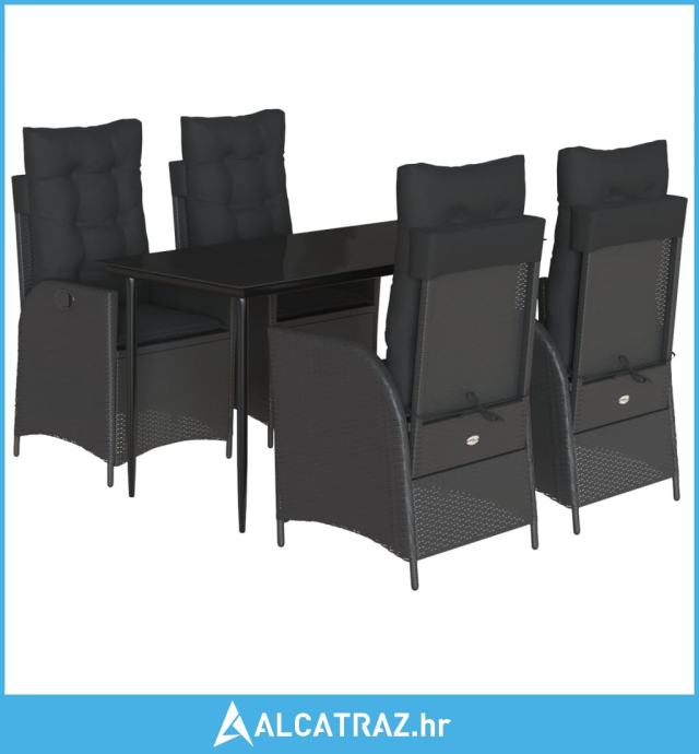 5-dijelni vrtni blagovaonski set s jastucima od poliratana crni - NOVO
